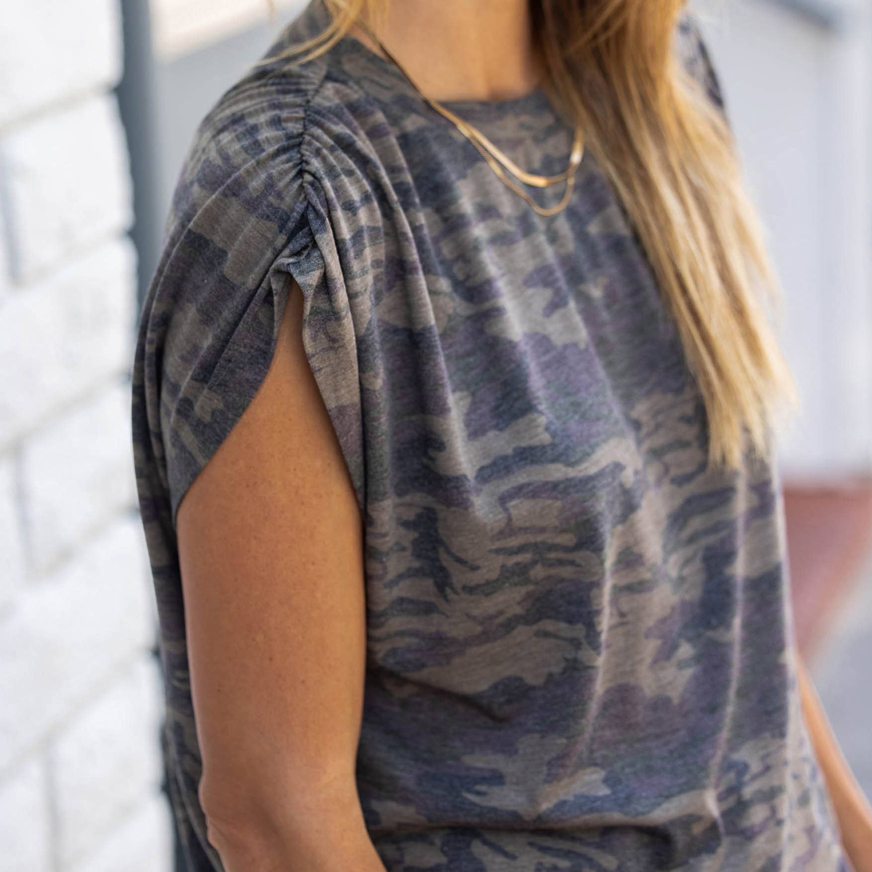 Give your everyday look a cool upgrade with this super-soft tee. Whether you're going out, to the mall, the beach (or nowhere at all!), this tee is the perfect go-to casual ensemble. With a loose fit and ruched shoulder detail, this shirt is sure to keep you comfortable as you take on the day.