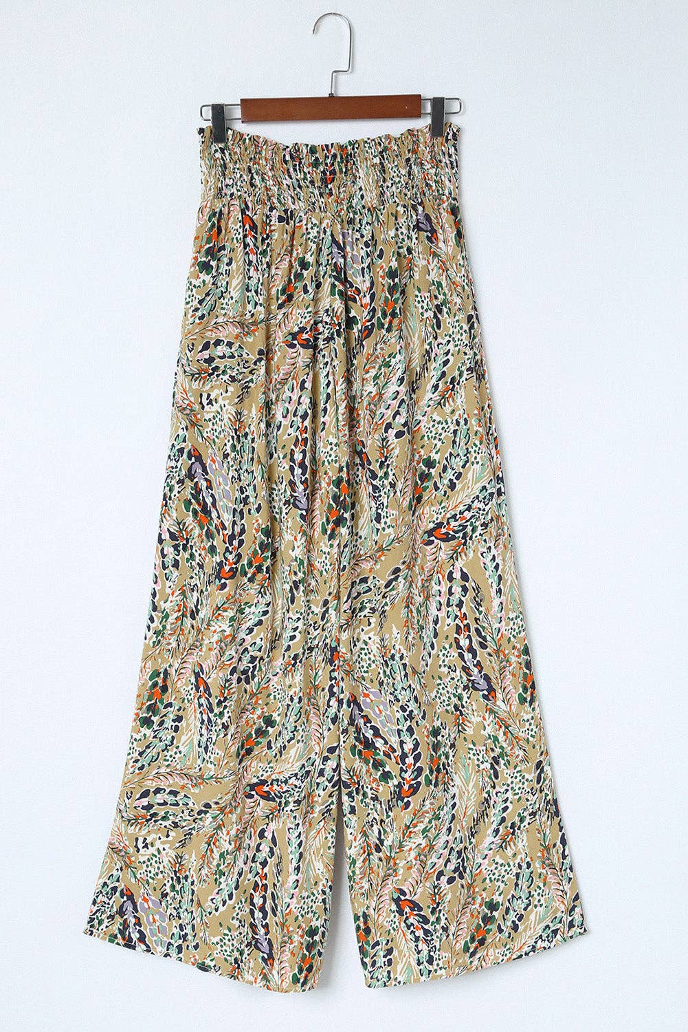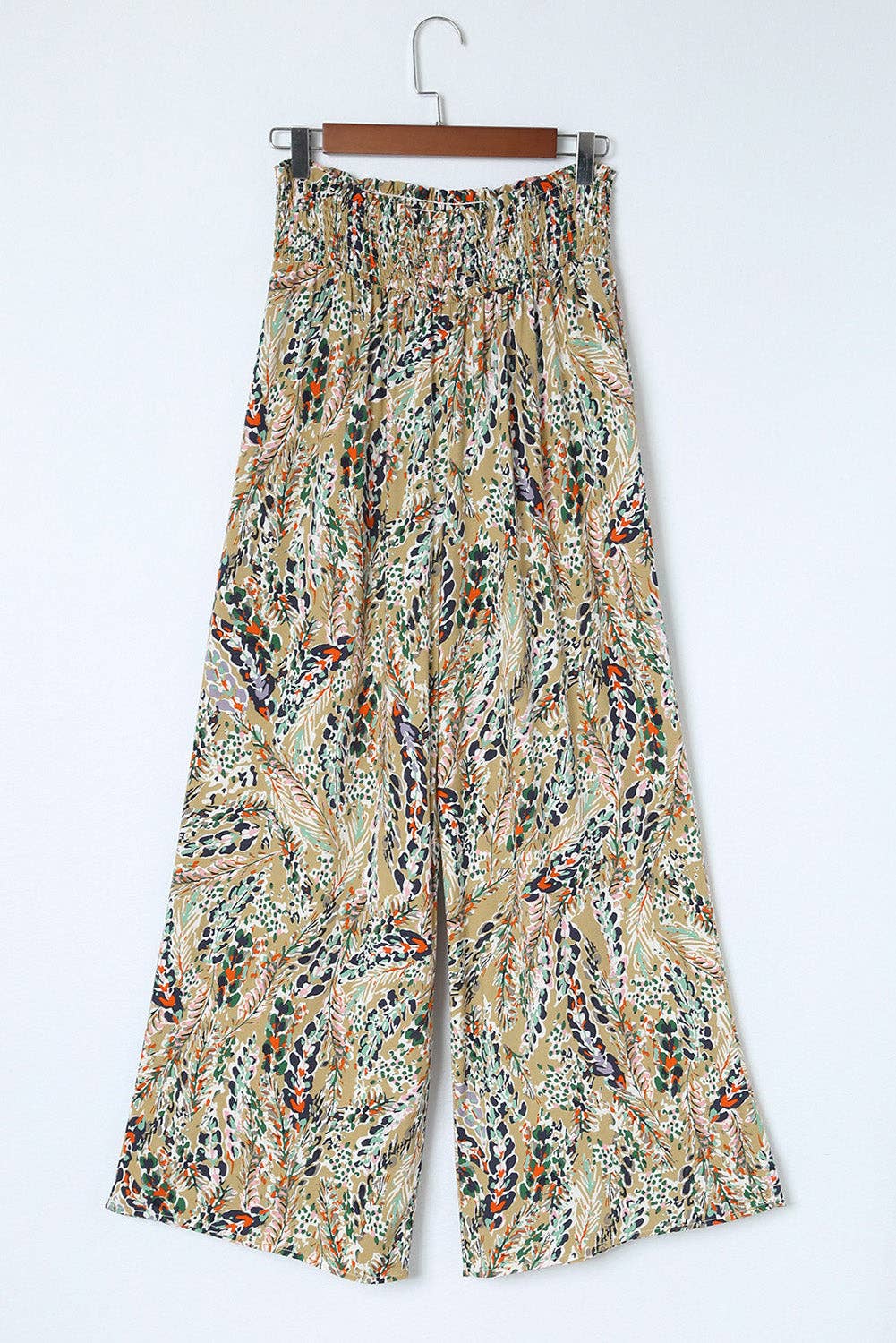 Lovesoft - Multicolor Floral Print Shirred High Waist Wide Leg Casual Pants