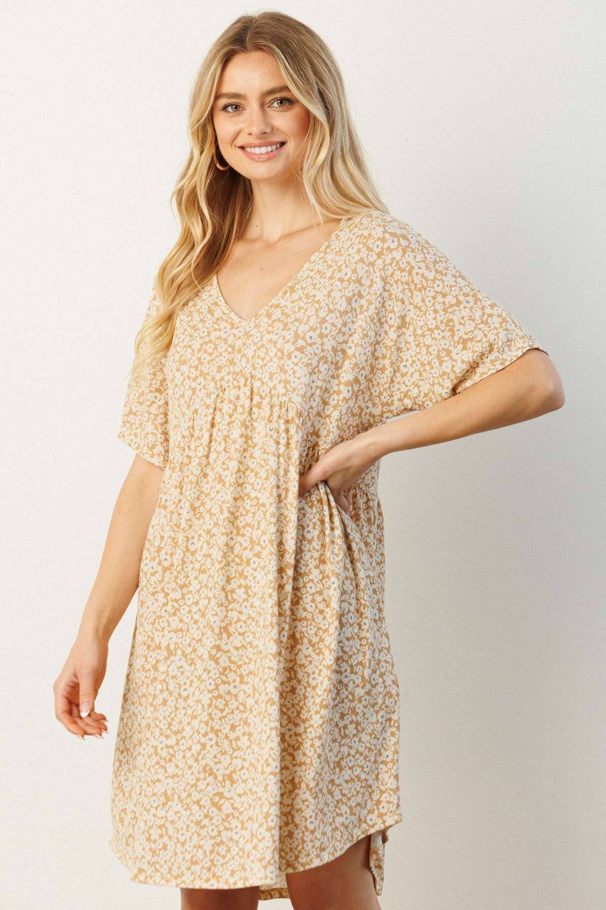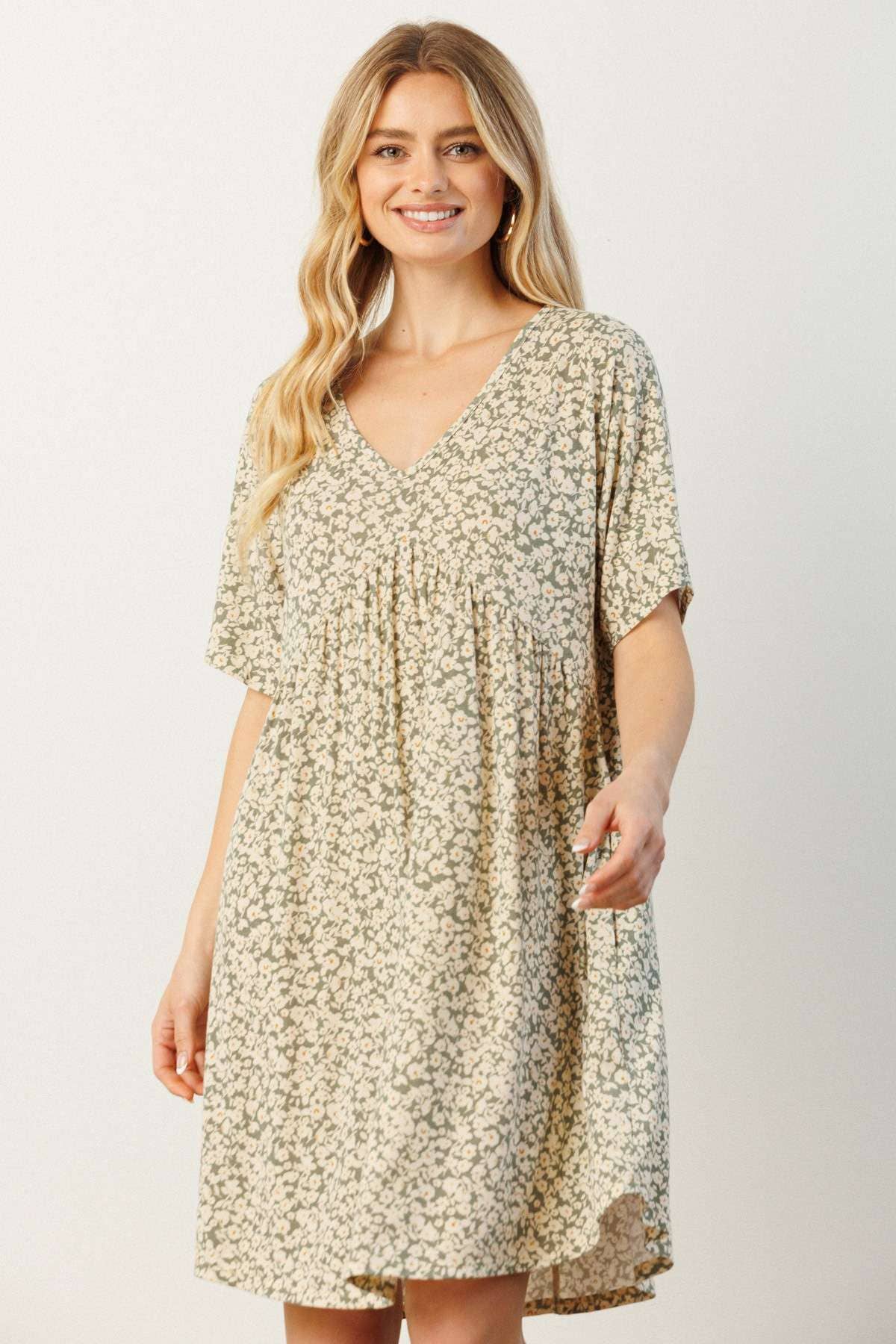 mittoshop - D1788-DITSY FLOWER PRINT BABYDOLL KNIT DRESS