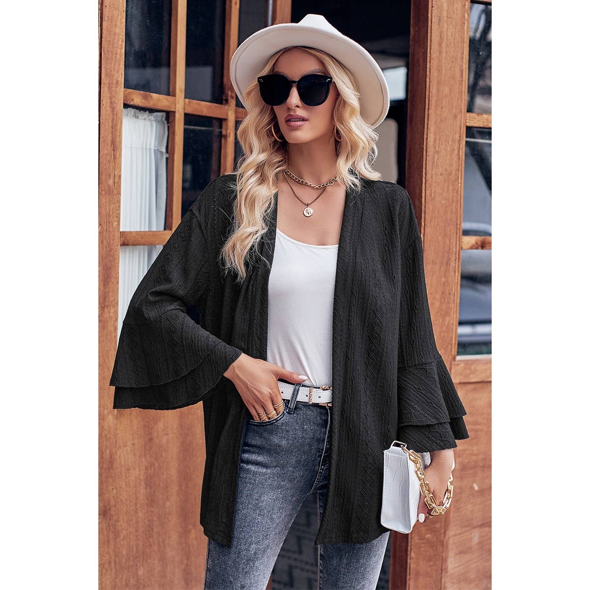 Supreme Fashion - Hollow Out Solid Sleeve Hem Ruffle Cardigan