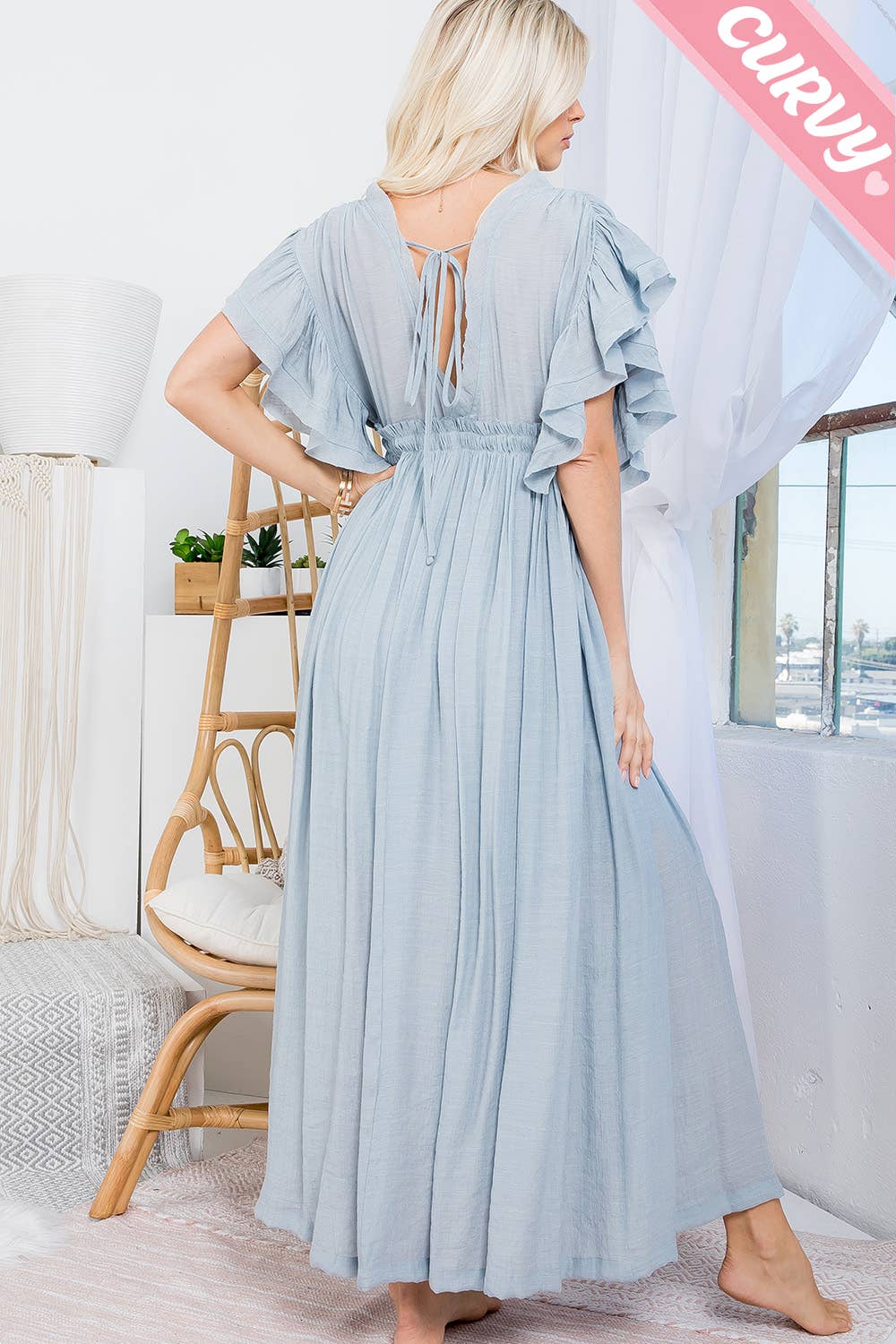 Sweet Lovely by Jen - DEEP V NECKLINE BUTTONDOWN FLOWY MAXI DRESS PLUS SIZE