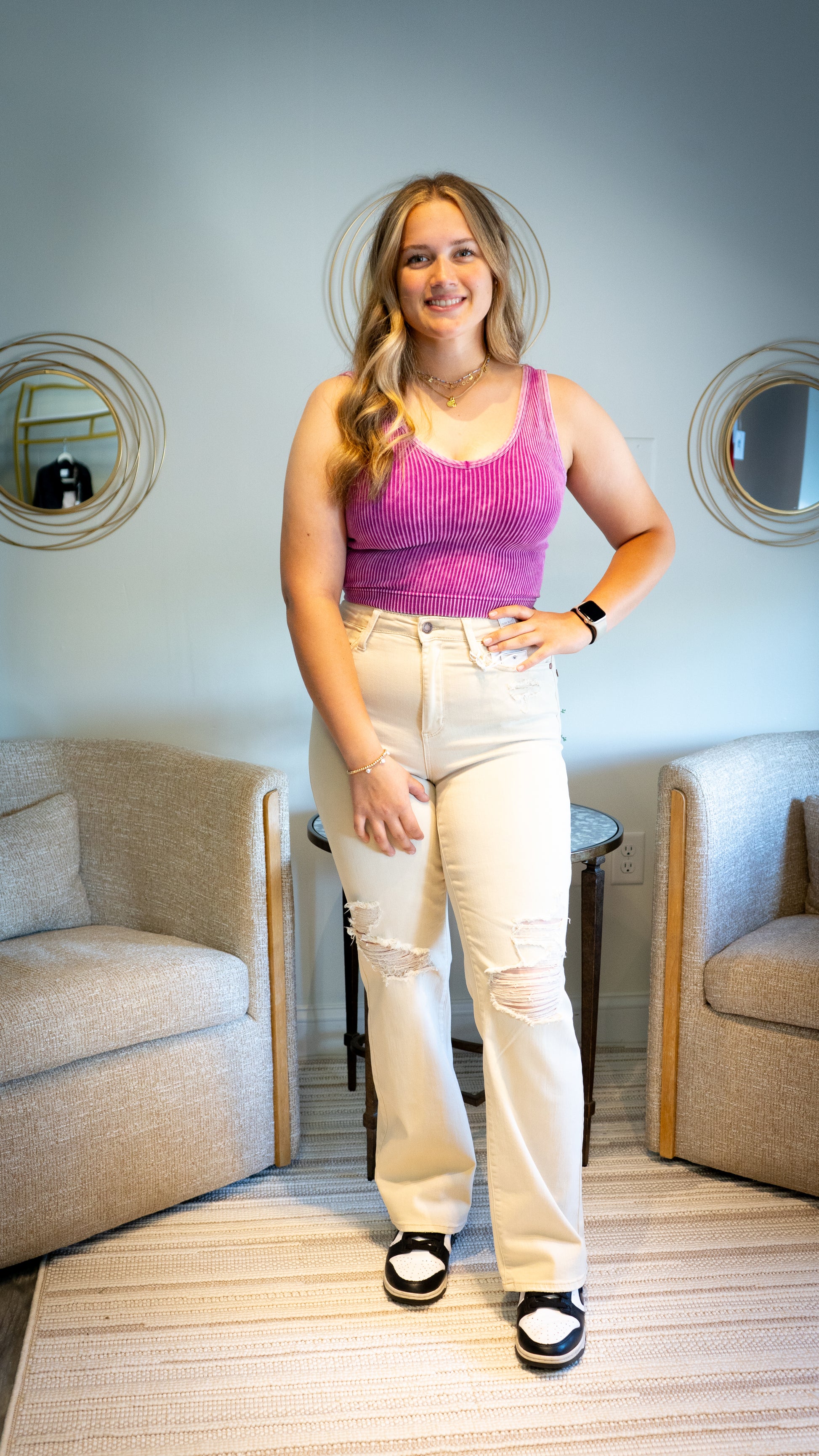 WASHED RIBBED CROPPED BRA PADDED V-NECK TANK TOP - REMOVABLE BRA PAD